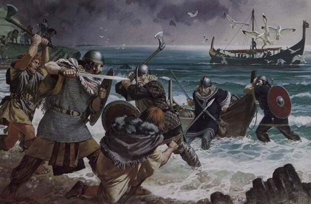 Примерно в это же время Англия подвергалась атакам со стороны сначала норвежских, а затем и датских норманнов. Там они были известны, как даны. В 842 году они безжалостно сожгли столицу Британии – Лондон, в 860 году под их властью оказался весь северо-восточный берег страны, а в 871 Лондон вновь подвергся нападению, что вынудило короля Англии бежать из столицы.