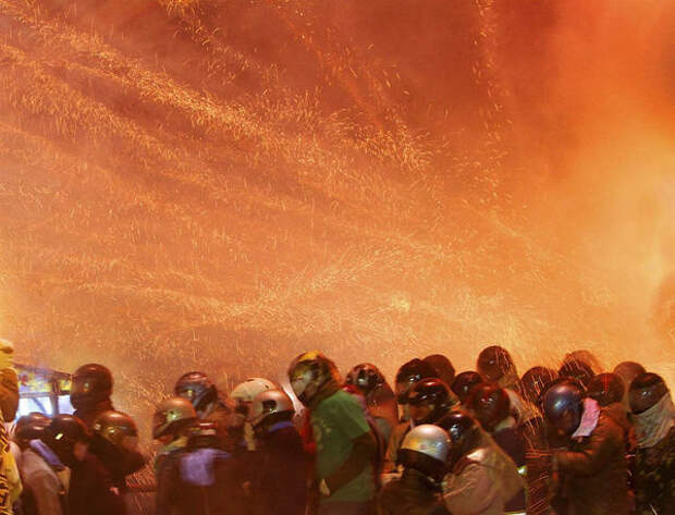 4. Люди стоят под фейерверками во время фестиваля Яншуй в рамках Китайского фестиваля фонариков. Местные жители считают, что если выстрелить петардами и фейерверками в толпу людей, злые духи уйдут – эта традиция переросла в настоящую туристическую достопримечательность. Фестиваль фонариков отмечают на 15-ый день Нового года по лунному календарю.