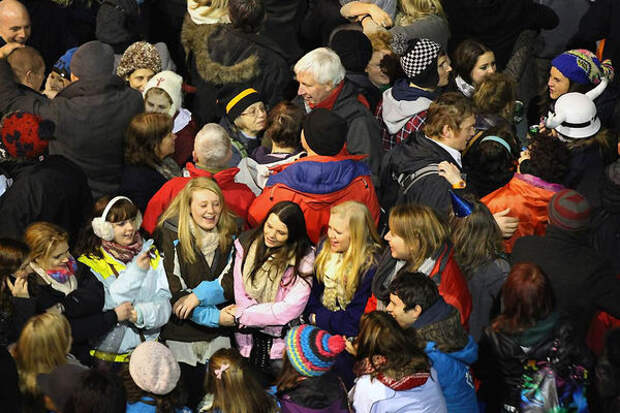 21. Жители Эдинбурга вышли на улицу Принцесс, чтобы отпраздновать Новый год. Традиционную новогоднюю песню «Aung Lang Syne» написал шотландский поэт Роберт Бернс в 1788 году, это ода старой дружбе. Компании друзей часто становятся в круг, берутся за руки и поют эту песню, а в начале последнего куплета они скрещивают руки и сближаются в центре круга.