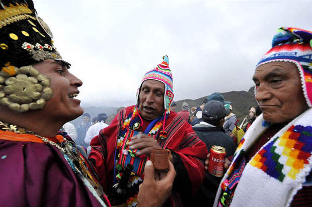 20. Один шаман кечуа и двое их племени аймара празднуют Новый год в Самаипате, Боливия. Аймарский Новый год – это праздник зимнего солнцестояния, и коренные жители просят в этот день хороший урожай в предстоящем сезоне.
