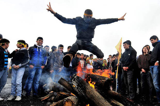 18. Турецкие курды прыгают через огонь во время праздника Навруз в Стамбуле. Навруз, что означает «новый день», отмечает первый день весны и считается Персидским новым годом. Его также отмечают в Иране, Афганистане, Азербайджане, Албании, Бахрейне, Армении, Грузии, Туркменистане, Таджикистане, Узбекистане, Киргизии и Казахстане, а также в некоторых поселениях иранцев и турков в Сирии, Ливане, Пакистане, Индии, северо-западном Китае, на Кавказе, в Крыму и на Балканах.